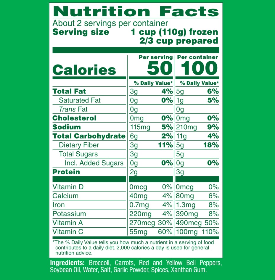 Fits your lifestyle and your freezer.™ Green Giant® Simply Steam® vegetables are not only delicious, they come in freezer-friendly, easy-to-stack boxes, with a microwavable pouch inside. Great for a meal, side dish or snack—anytime. The perfect blend of Broccoli, Carrots and Sweet Peppers.