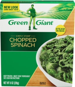 - 2 – 8 oz. pkg. Green Giant® Simply Steam® Chopped Spinach