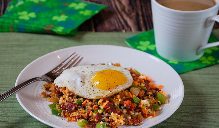 Corned Beef, Cauliflower & Sweet Potato Hash
