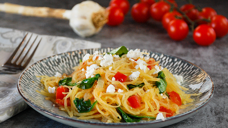 Spaghetti Squash with Tomato, Spinach and Goat Cheese
